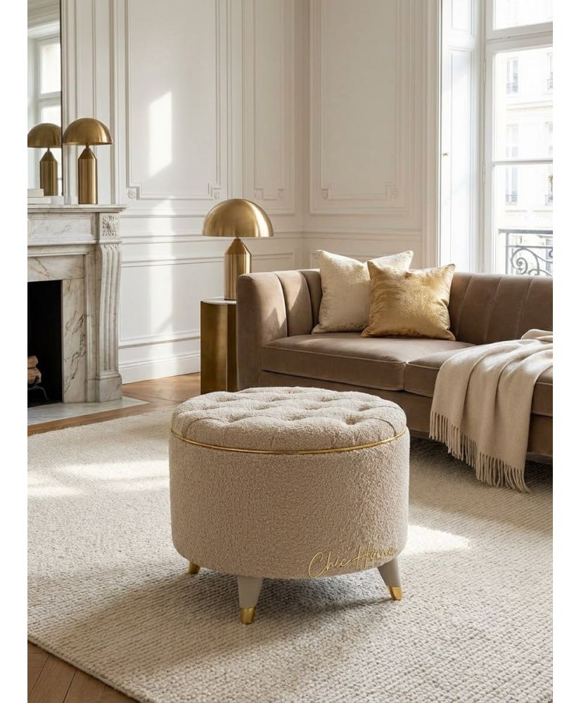 Pouf EVA – Beige avec touche dorée | Chic Home