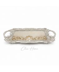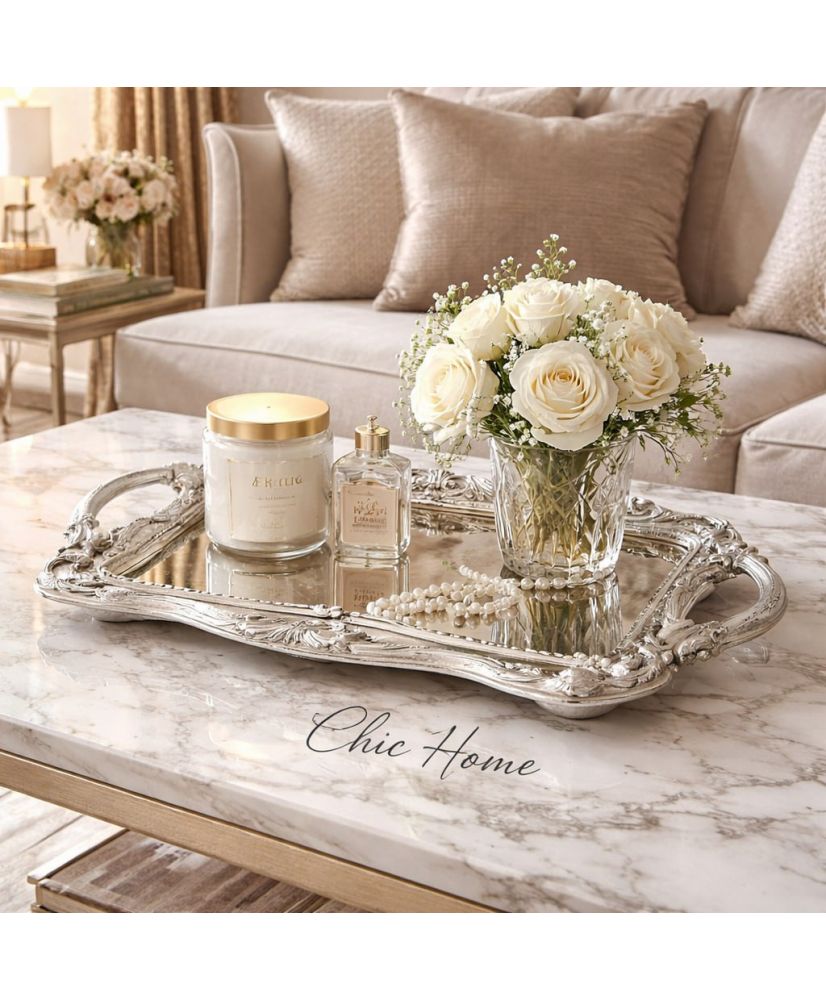 Plateau MONICA en résine argent avec fond miroir | Chic Home